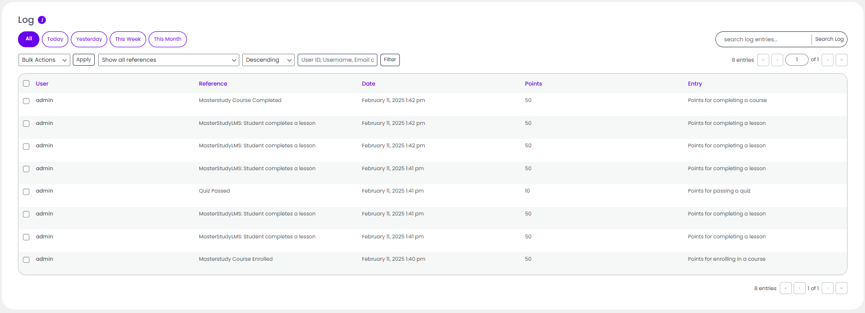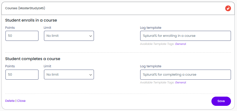 Reward your users with points when user completes a course.